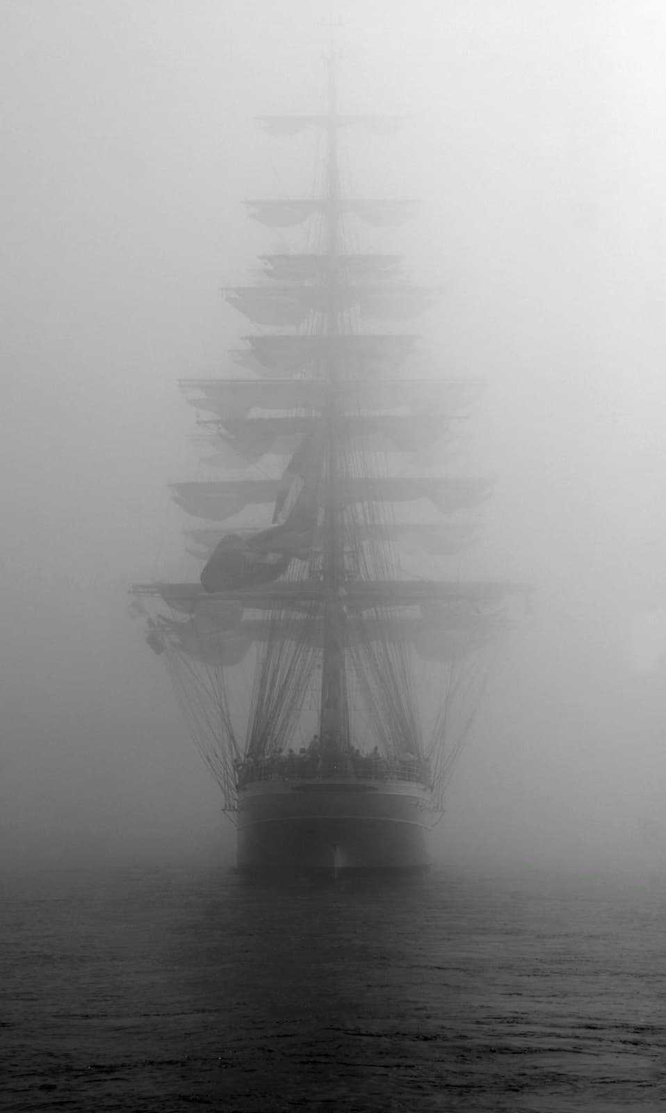 emerges from the mist. Two ships crossing paths is almost unthinkable when the ocean is so vast, yet I can still imagine the trepidation, the excitement. And even though sailing is hard, dirty work,